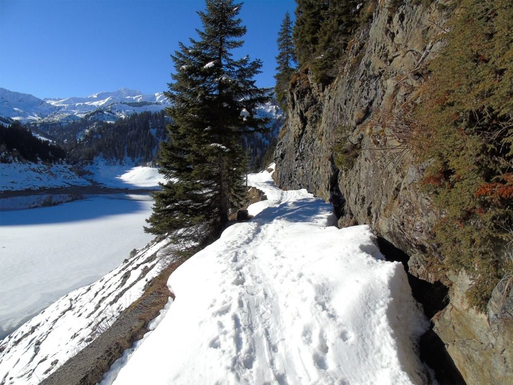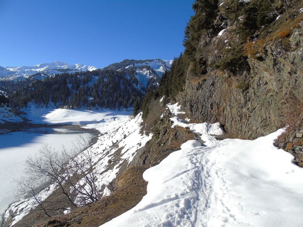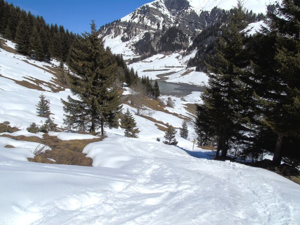 Au barrage (1559), descendre et le traverser et prendre la piste qui le longe jusqu'au bout au panneau (1557) de la Côte.
