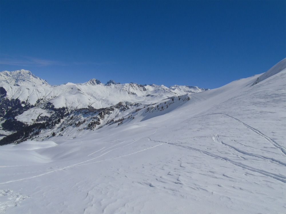 Longue course qui n'a rien à voir avec le trajet d'été et qui offre des vues enneigées sur le Mont Blanc à couper le souffle...(!)